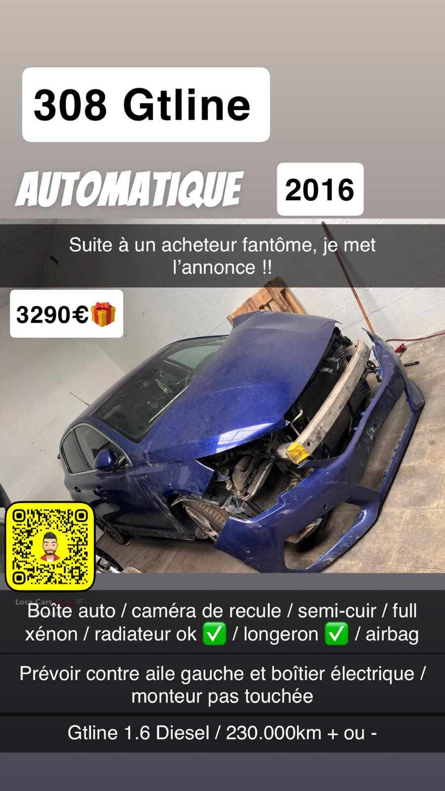308 GTLINE 1.6 HDI ACCIDENTEE ( sans procédure )